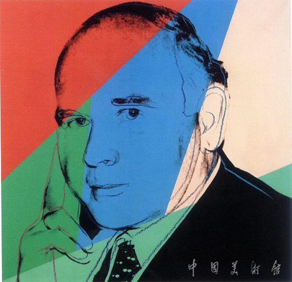這是一幅亞麻布絲網(wǎng)印刷畫(huà),是收藏家彼得·路德維希的大型肖像畫(huà)中的一幅。畫(huà)中的路德維希以手托頭,神態(tài)專注,以眼神透析出路德維希教授敏銳的藝術(shù)鑒賞力。線條與輪廓都相當(dāng)簡(jiǎn)潔利索,色塊的分割平增了人物表情的深度——整個(gè)畫(huà)面主體突出、具有較明顯的速寫(xiě)風(fēng)格。 畫(huà)家安迪·沃霍爾是美國(guó)最著名的波普藝術(shù)家,曾因藝術(shù)化地展出過(guò)美國(guó)人所熟知的雞湯罐頭和布利洛肥皂而聞名遐邇。他總是直接以當(dāng)時(shí)與人們關(guān)系最為密切而又總是熟視無(wú)睹的現(xiàn)實(shí)生活為創(chuàng)作內(nèi)容,試圖取消藝術(shù)與生活的界線,完整地反映當(dāng)代美國(guó)的大眾文化。