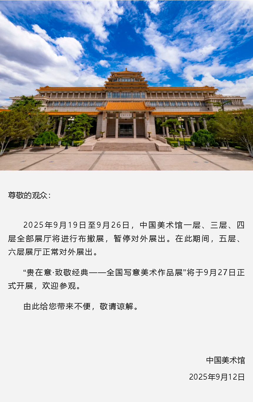 中國美術(shù)館關(guān)于部分展廳暫停開放的公告