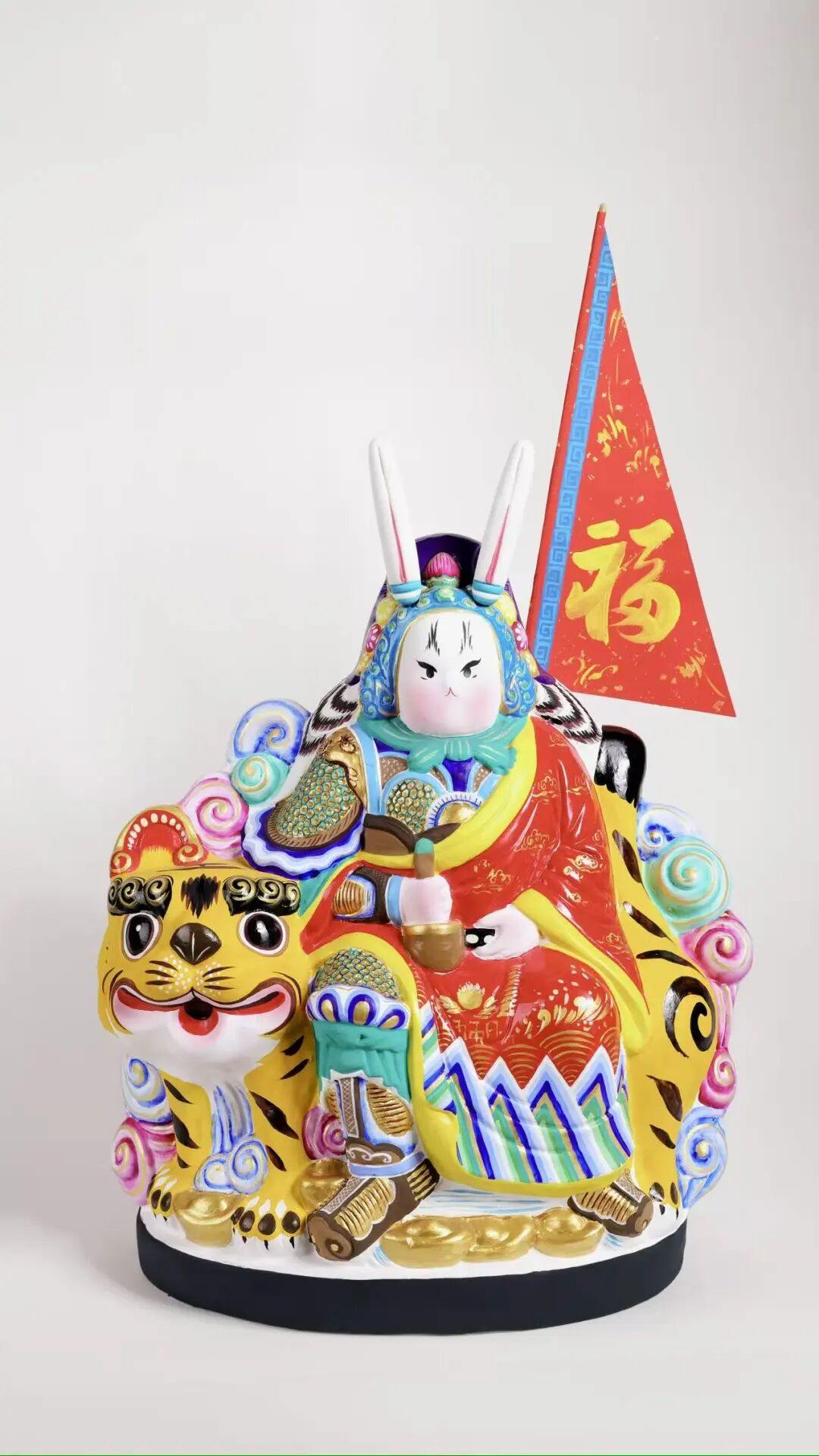 旗開福來(騎黃虎兔兒爺) 彩塑