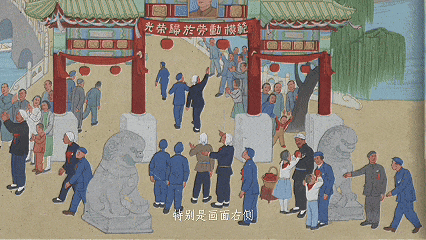 原來(lái),這幅畫(huà)描繪的是1950年全國(guó)勞動(dòng)模范代表大會(huì)期間,勞模們游園的盛況。