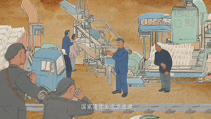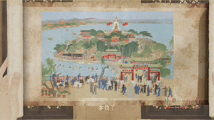 這一集不只是講解,還把北海公園的實(shí)景拍了下來(lái)。畫(huà)里的人物和現(xiàn)實(shí)的游客,通過(guò)動(dòng)畫(huà)和特效巧妙穿插對(duì)比,仿佛“畫(huà)里畫(huà)外”來(lái)回穿越??粗鴦谀?cè)诋?huà)里扭秧歌,再一轉(zhuǎn)場(chǎng)就是今天游客們劃船的場(chǎng)景,既有趣又生動(dòng)。