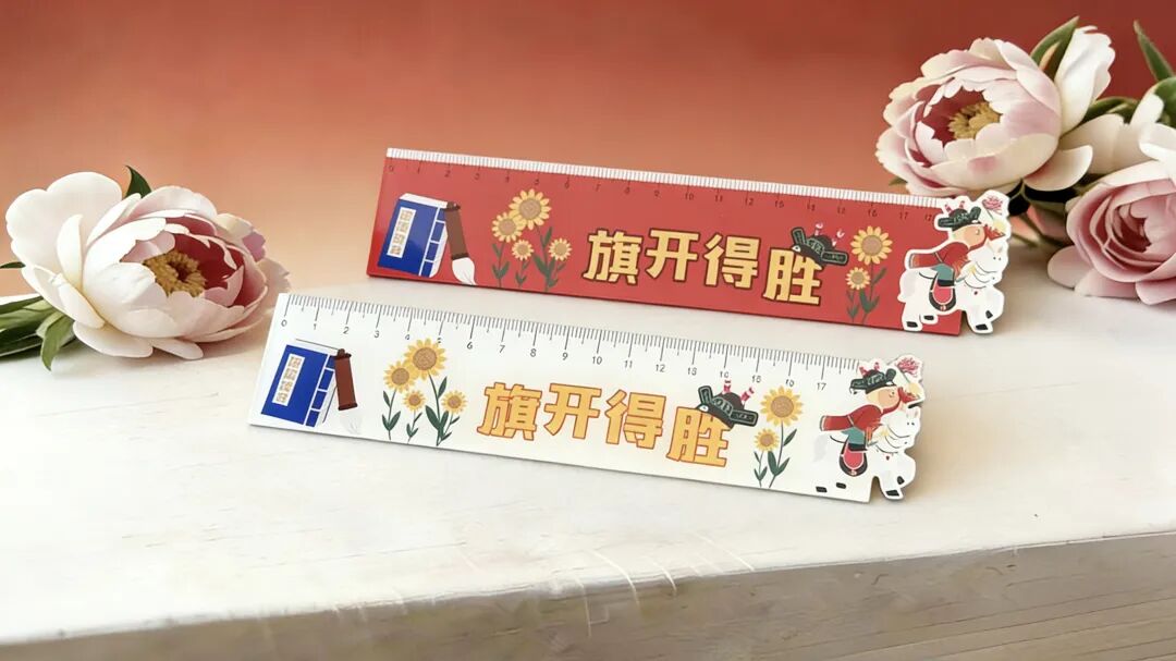 “旗開(kāi)得勝”系列產(chǎn)品包括文具、配飾、擺件等多種品類。文件夾、筆記本、直尺、筆袋等實(shí)用文具,將旗開(kāi)得勝的美好祝愿融入日常書(shū)寫與學(xué)習(xí)。