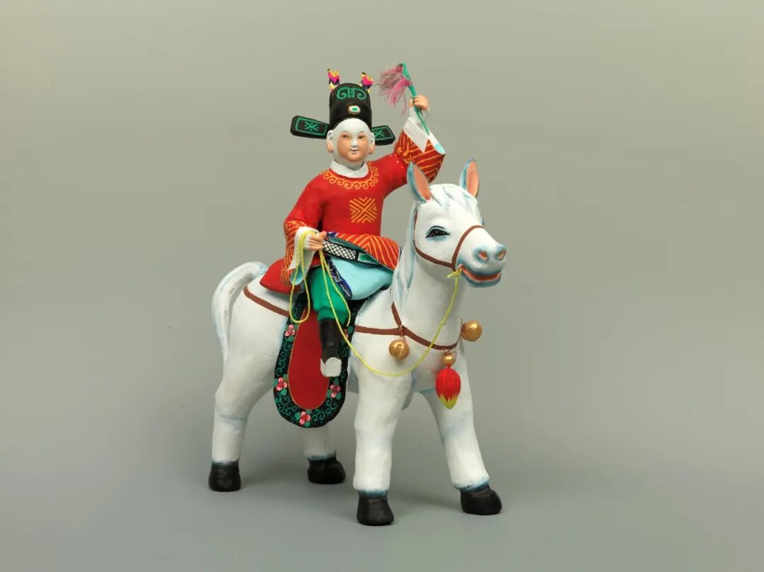 本系列產(chǎn)品靈感源自中國(guó)美術(shù)館館藏的國(guó)家級(jí)非遺精品——惠山泥人《狀元及第》。該作品由傳承人喻湘漣、王南仙聯(lián)袂創(chuàng)作,生動(dòng)刻畫(huà)狀元得中、騎馬游街的熱鬧場(chǎng)景,寓意金榜題名、前程似錦。
