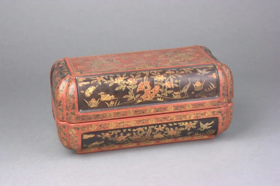 鎗金彩漆云龍荷塘紋漆盒 明