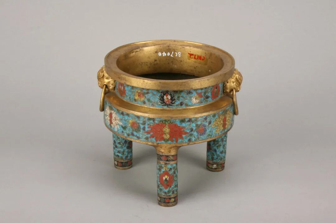 銅胎掐絲琺瑯纏枝蓮紋三足爐 清