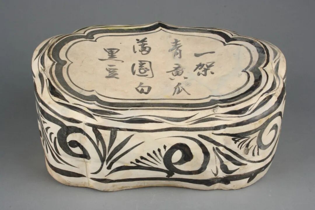 白地黑花文字如意形枕 金