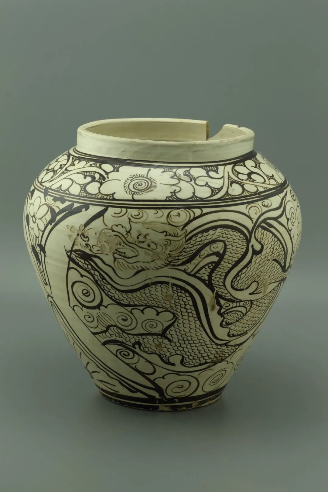 白地黑花龍鳳紋罐 元