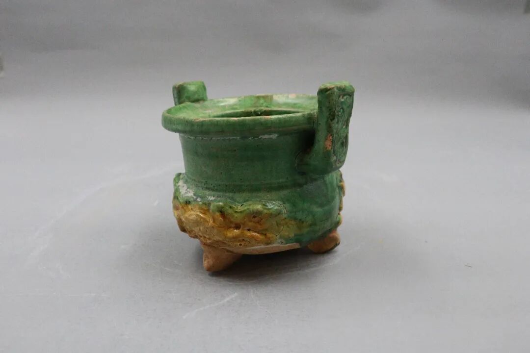 三彩三足陶爐 元