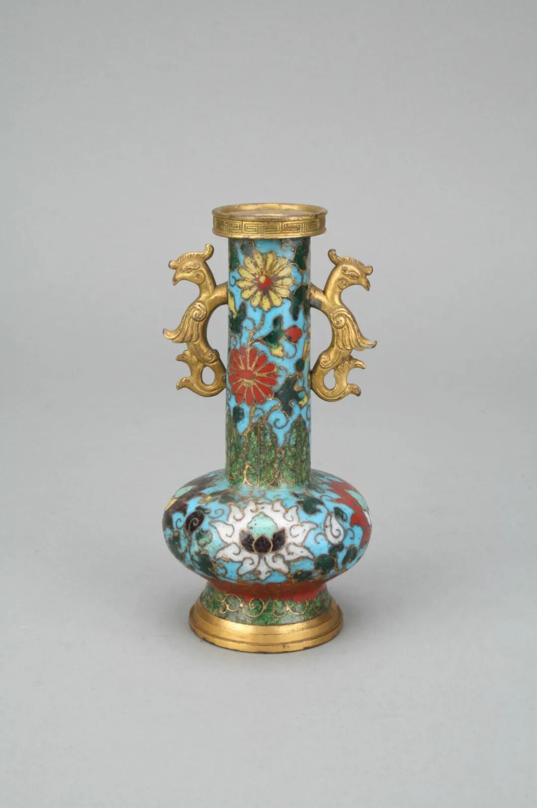 銅胎掐絲琺瑯鳳耳瓶 明