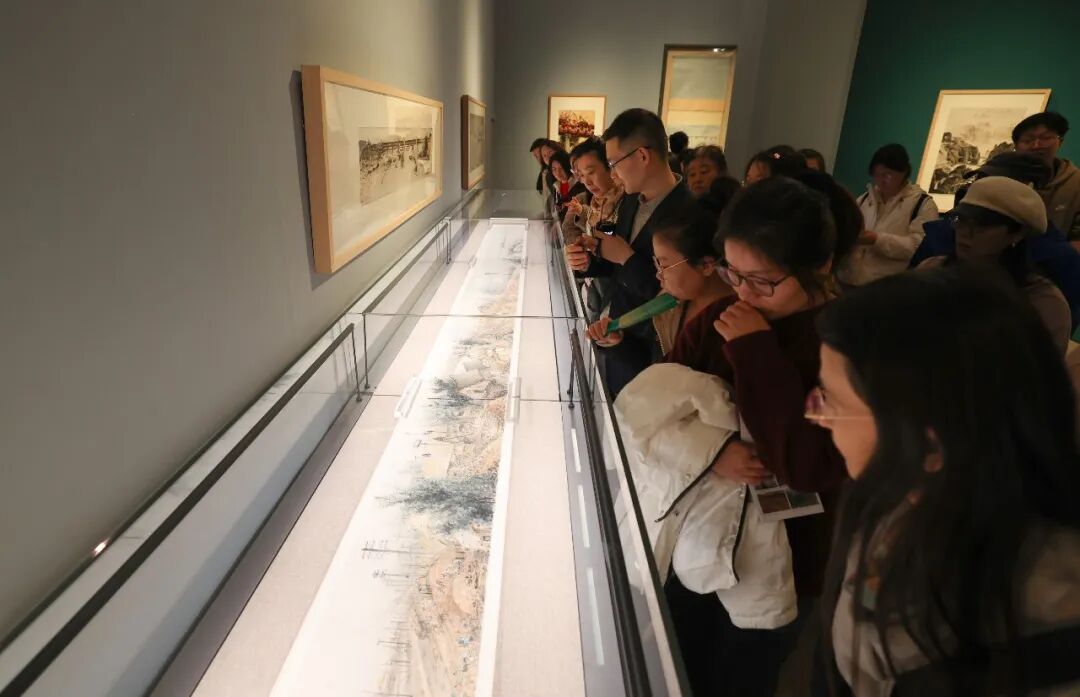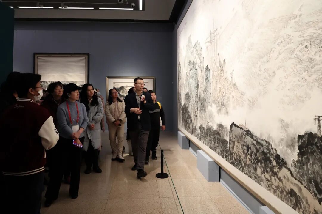 策展人按照展覽篇章,帶領(lǐng)觀眾先看長江的自然形態(tài)與文明源流,再看橋梁大壩與建設(shè)記憶,最后看三峽移民與江邊生活,讓宏大的主題落回具體的面孔中。在講解過程中,策展人結(jié)合展覽中的重點作品,圍繞作品的創(chuàng)作背景和藝術(shù)語言展開細(xì)致解讀,深入剖析作品蘊含的精神內(nèi)涵,帶領(lǐng)觀眾循著藝術(shù)作品,感受長江文化的千年歷史積淀與鮮明時代意義。