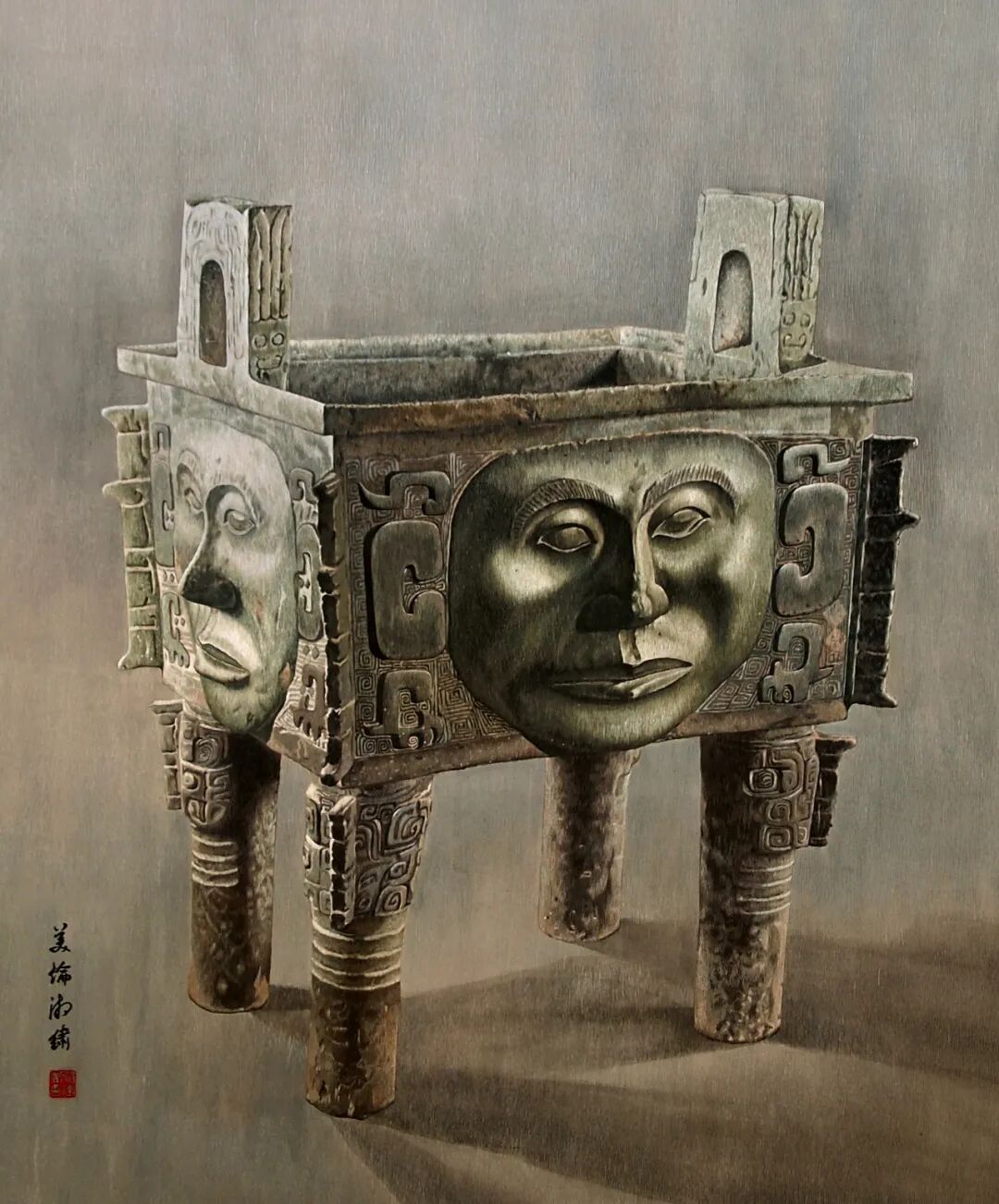 人面方鼎 鄔建美 湘繡