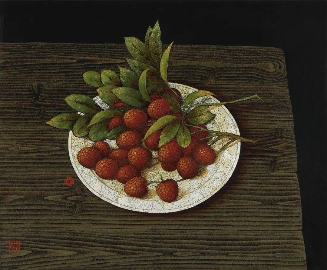 荔枝靜物 鄭益坤 漆畫