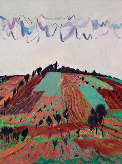 王克舉的油畫創(chuàng)作時刻關(guān)注著藝術(shù)與自然生命的密切關(guān)系。《夜雨初晴》是其在2015年的油畫作品,突出呈現(xiàn)和詮釋了他以寫生為創(chuàng)作方式。王克舉作為表現(xiàn)性與意象性油畫的代表人物,在其畫面中,山巒、田地、樹木乃至天上的云朵都在抽象性的筆法表現(xiàn)下幻化出屬于王克舉的形態(tài)和色彩。對景造意、情景交融,王克舉通過寫意性油畫語言,表現(xiàn)出自然的山水風景和蓬勃綠植,反映著自然生機的向度與生命的力度。作品不僅具有大膽的線條和鮮明的色彩,更承載著藝術(shù)家的情緒與情感,體現(xiàn)出藝術(shù)家在靈動結(jié)構(gòu)中探索藝術(shù)在秩序規(guī)律與桎梏之間的博弈。